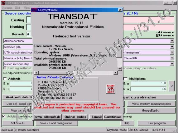 Killetsoft TRANSDAT v17.18 英文正式版(地理坐標轉換軟體)