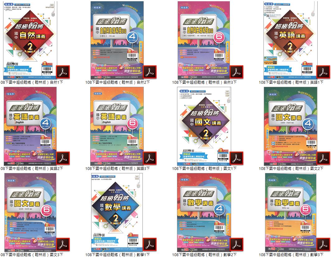 108學年下學期 國中超級翰將講義 翰林版 1-3年級 國文+英語+數學+自然 講義光碟DVD版