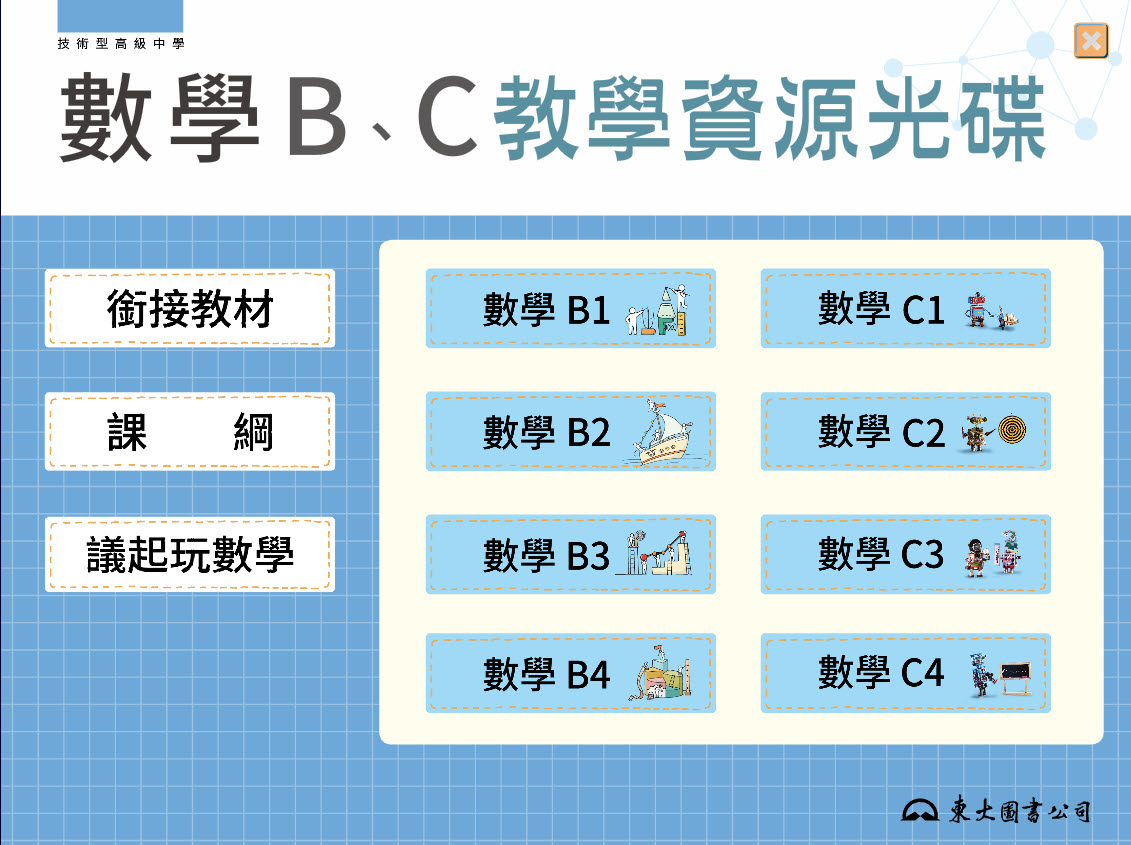 112學年上學期 技術高中 三民東大版 數學科(B版 1-4冊、C版 1-4冊) 教學光碟