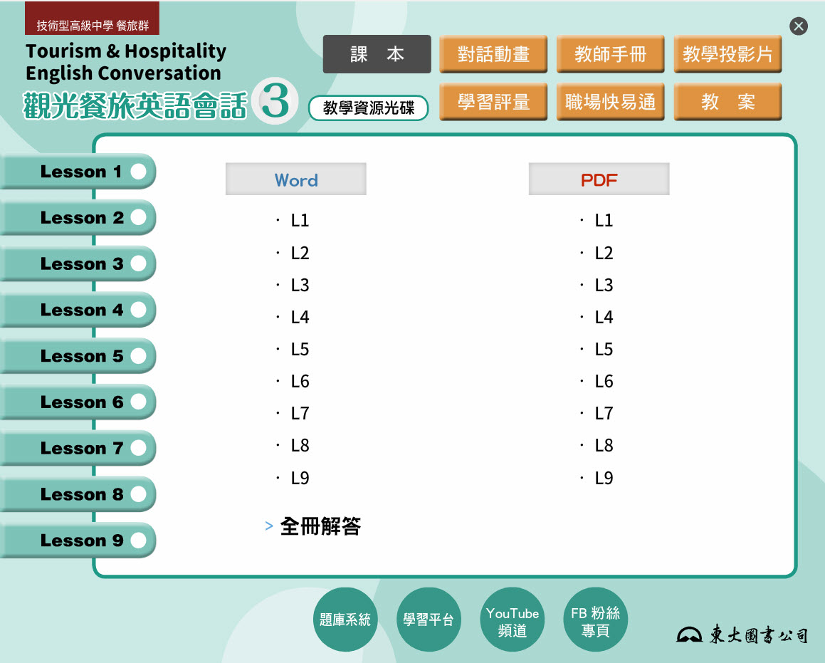 112學年 技術高中命題光碟、教學光碟 三民東大版 觀光餐旅英文 第3冊 題庫光碟、教學光碟