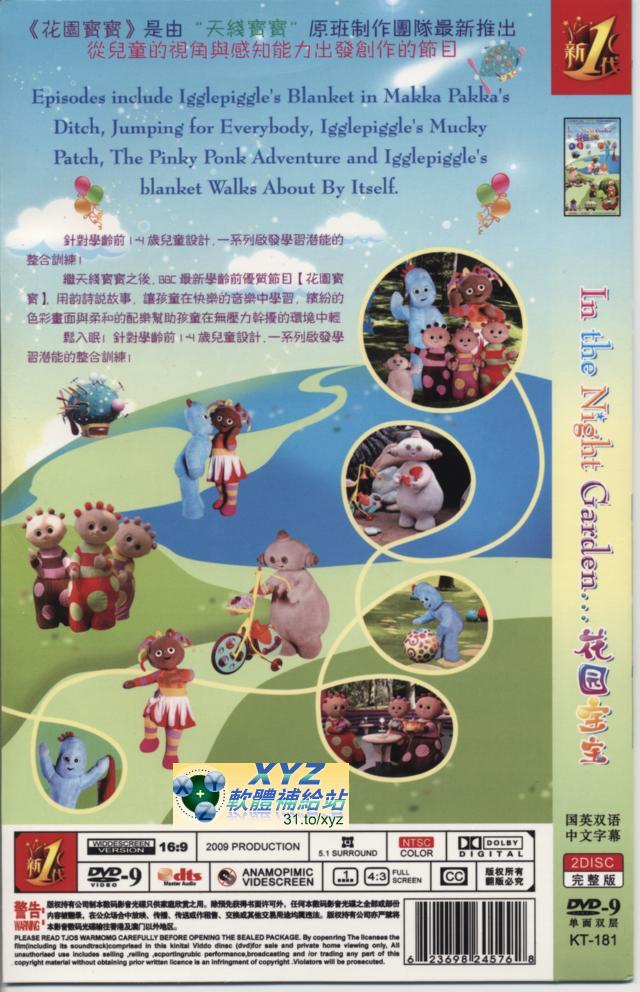 • 藍光畫質版 PeIn the Night Garden 花園寶寶 第三季 01-45集(完) 英語/國語發音 英文/繁體中文/簡體中文語言字幕版(幼兒教學)(適用任何家用DVD播放機)(DVD+DVD9版)(1DVD+2DVD9)