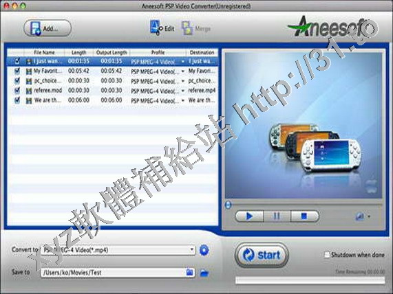 Aneesoft Video Converter Pro v2.9.8 英文正式版(轉換視頻到索尼PSP影片和PSP視頻設計的轉換器軟體)